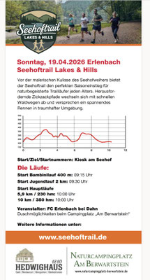 Für Sonntag, 19. April 2026 ist die erste Auflage des Erlenbacher Seehoftrails "Lakes & Hills" geplant.