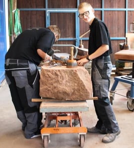 Als Kind schon war André Mertel dabei, wenn sein Vater Gedenksteine besorgte und Grabstätten herrichtete. Der Maurer Michael Mertel und seine Frau Elisabeth hatten das Geschäft seit Mitte der 1960er Jahre in Erlenbach bei Dahn aufgebaut. 1995 übernahm der Sohn André den Betrieb und führt ihn bis heute als Steinmetz- und Steinbildhauermeister. Der Umgang mit Natursteinen war ihm von klein auf vertraut, und so wurden für André Mertel früh die Weichen gestellt, das Steinmetz- und Steinbildhauerhandwerk zum Beruf zu machen, sagt der heute 46-Jährige. Nach der Ausbildung in einem Hinterweidenthaler Betrieb besuchte er die Meisterschule in Kaiserslautern, 1994 legte er die Meisterprüfung ab.