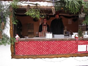 Wolfgang Bösl bietet verschiedene Leckereien an, die im rollenden Backofen frisch zubereitet werden. Die Angebote reichen von Flammkuchen aus dem Holzofen über Crêpes bis zum