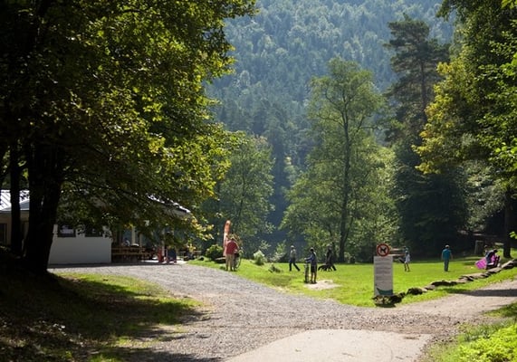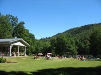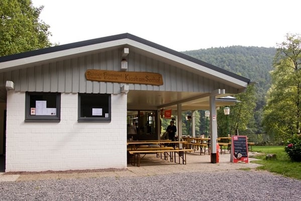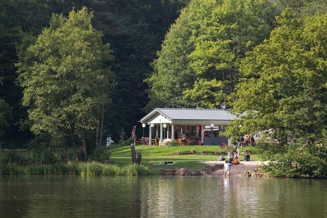 Der Naturbadesee Seehof unterhalb der Burg Berwartstein liegt abseits der großen Verkehrsströme in einem verwunschenen Bachtal und ist ringsum von Bäumen umgeben. Urlauber und Badegäste lieben die ungestörte Ruhe außerhalb der Ferienzeit und die weiträumige Liegewiese, die Kleinen und Kleinsten tummeln sich während der Ferien und an schulfreien Tagen gerne im und am Wasser. Besonders viel Zulauf erlebt der See, seit der Kiosk wieder eröffnet wurde, der nach einer Brandstiftung brachlag. An seiner Stelle hat die Gemeinde ein neues, größeres Gebäude errichtet, das nun durchaus mehr darstellt, als das Wort ,,Kiosk" nahelegt: Es präsentiert sich als schicker, luftiger, komplett überdachter Sommersitz mit Gastronomiebetrieb, der Wasserratten und Badegäste ebenso wie hungrige und durstige Wanderer zur Rast und zum Imbiss einlädt. Mit dem Wintergarten bietet der Kiosk auch im Winter Wärme und Behaglichkeit. Und seine Küche bietet mehr, als ein Kiosk vermuten lässt: Das Angebot reicht von herzhaft - wie Schnitzel, Currywurst, Wurstsalat, Pommes, Flammkuchen und saisonalen Gerichten - bis süß mit hausgemachten Kuchen, Kaffee und Eis. Die Pächterin Sandra Lowrie, die im Dahner Felsenland auch eine schicke Vier-Sterne-Ferienwohnung anbietet (www.felsenland-ferienwohnung.de), und ihr Team sorgen für einen vielfältigen kulinarischen Seehof-Genuss.